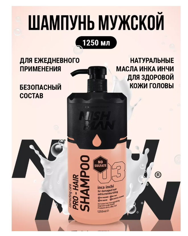 - Результат - Шампунь профессиональный Nishman не просто очищает ваши волосы, но и восстанавливает их структуру благодаря своей уникальной формуле, которая содержит экстра увлажнение. Этот шампунь для мужчин обладает высокой эффективностью в борьбе с повреждениями и пересыханием волос, защищая их от негативных воздействий окружающей среды.