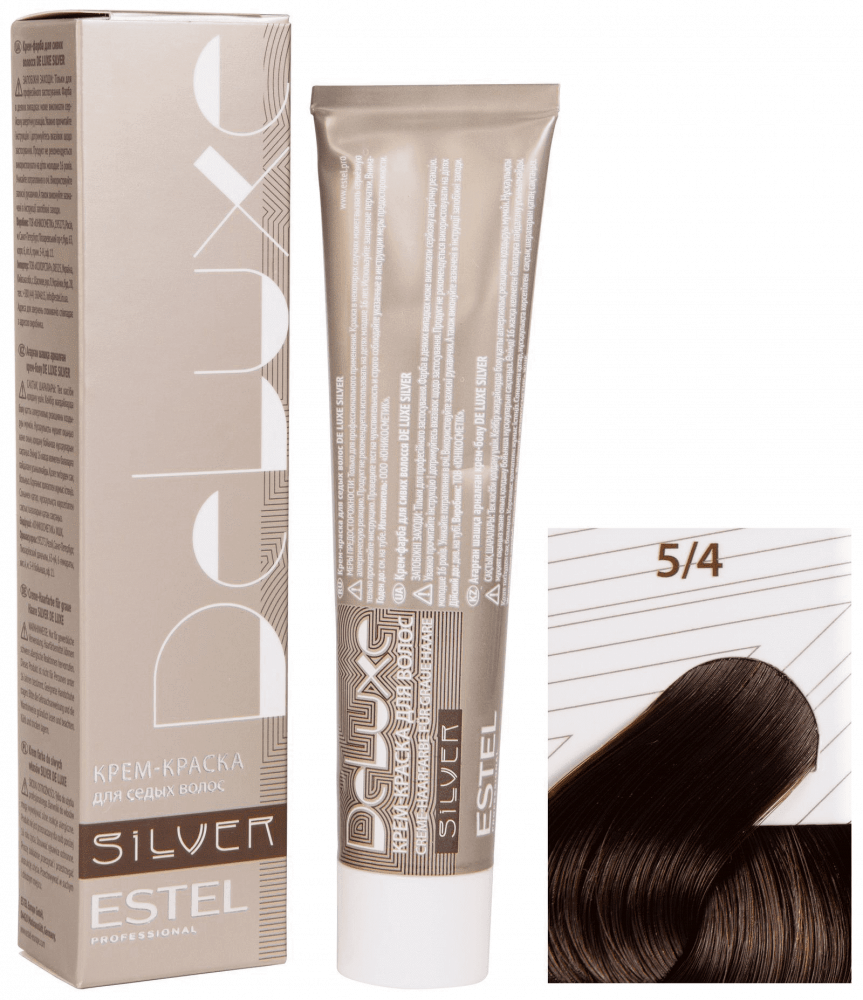 - Реквизиты - Крем-краска для седых волос Estel DELUXE SILVER 60 мл медный, шатен 5|4 светлый шатен медный