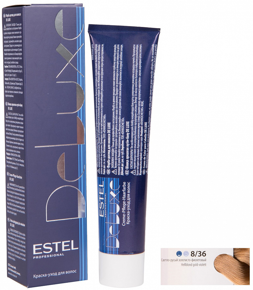 - Реквизиты - Краска-уход для волос Estel Deluxe 60 мл фиолетовый, золотистый, русый 8|36 светло-русый золотисто-фиолетовый