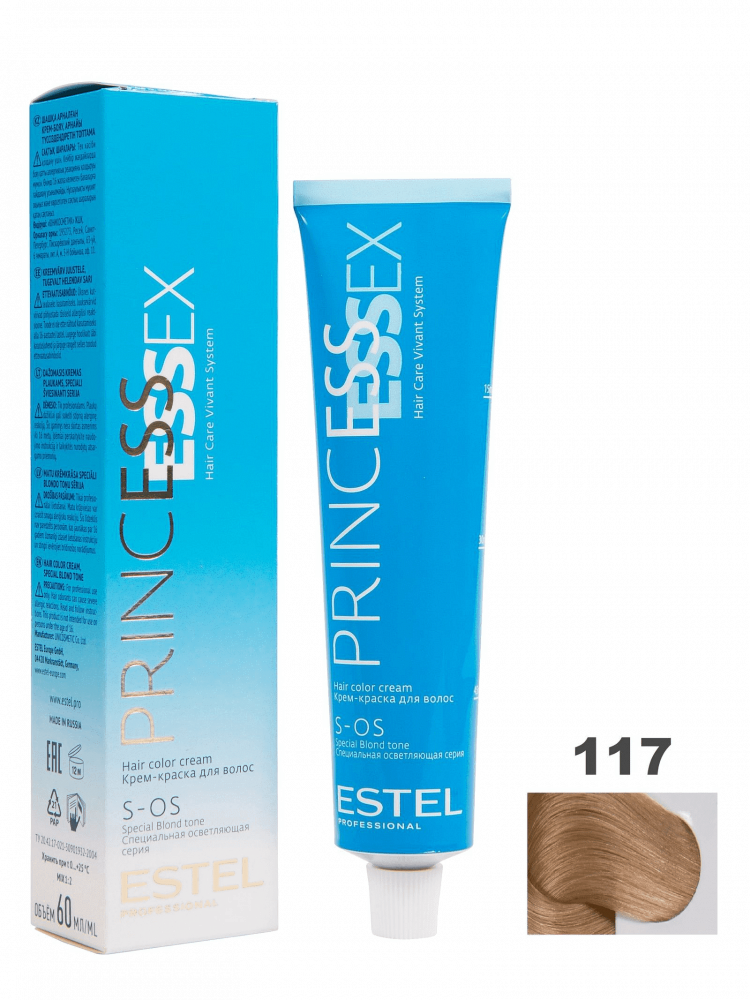 - Реквизиты - Крем-краска для волос S-OS Estel ESSEX PRINCESS 60 мл коричневый, блондин, пепельный 117 суперблонд пепельно-коричневый
