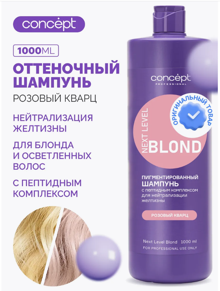 - Результат - Оттеночный шампунь "Розовое золото" от бренда Concept - это идеальное решение для тех, кто стремится избавиться от желтизны волос и придать им здоровый блеск. Этот шампунь содержит уникальную формулу, которая не только удаляет желтые оттенки, но и питает волосы, делая их более упругими и шелковистыми. Благодаря использованию натуральных ингредиентов, он подходит для всех типов волос и не вызывает раздражения кожи головы.