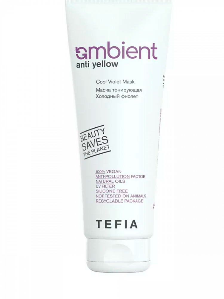 - Результат - Маска тонирующая холодный фиолет Cool Violet Mask Ambient Anti Yellow 250 мл - эффективно нейтрализует нежелательные желтые нюансы на осветленных, седых и натуральных светлых волосах, тонирует в холодные оттенки благодаря высокой концентрации синих и фиолетовых пигментов.