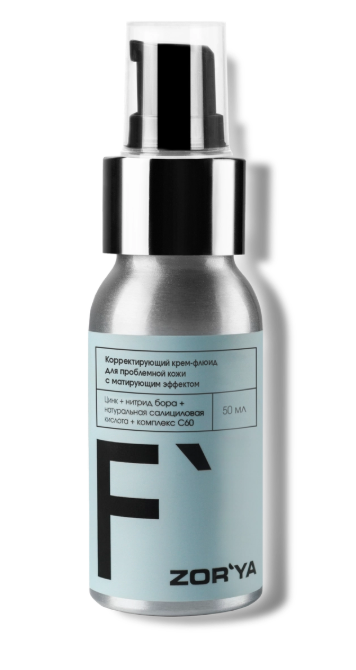 - Результат - Корректирующий крем-флюид разработан специально для ухода за проблемной и жирной кожей. Нормализует выработку себума, сужает поры, борется со следами постакне, уменьшает воспаления и обеспечивает контроль над блеском. Эффективная формула с цинком, нитридом бора, натуральной салициловой кислотой и комплексом С60 заметно уменьшает воспаления, выравнивает тон, придаёт коже гладкость, борется с комедонами и акне. Легкая текстура быстро впитывается, не оставляя ощущения липкости, не забивает поры, не провоцирует появление воспалений и комедонов. Нормализует выработку себума, сужает поры Борется со следами постакне Нейтрализует действие свободных радикалов в 172 раза эффективнее витамина С Обеспечивает противовоспалительное и регенерирующее действие Снимает воспалительные процессы, раздражения, покраснения Обеспечивает контроль над блеском