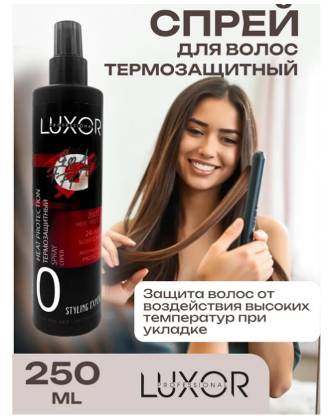 - Результат - Профессиональный термозащитный спрей для волос от бренда Luxor создан специально для защиты ваших локонов от воздействия высоких температур при укладке. Уникальная формула с фитополимером, соком алоэ вера и экстрактом каштана обеспечит многофункциональный уход за волосами, возвращая им мягкость, эластичность и блеск. Несмываемое средство помогает предотвратить секущиеся кончики, облегчает расчесывание и укладку, борется с пушистостью и защищает от негативного воздействия окружающей среды — будь то ультрафиолетовые лучи или морская вода. Эффект антистатика устраняет электризацию волос, а активные компоненты насыщают структуру локонов, делая их более гладкими и ухоженными.